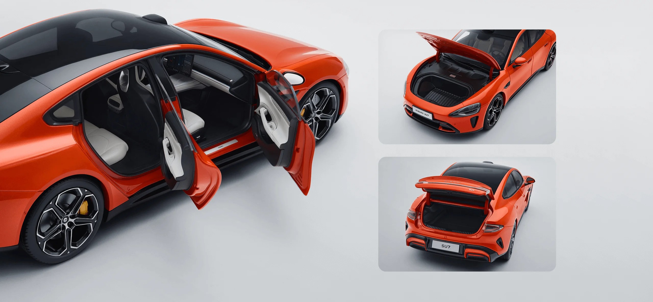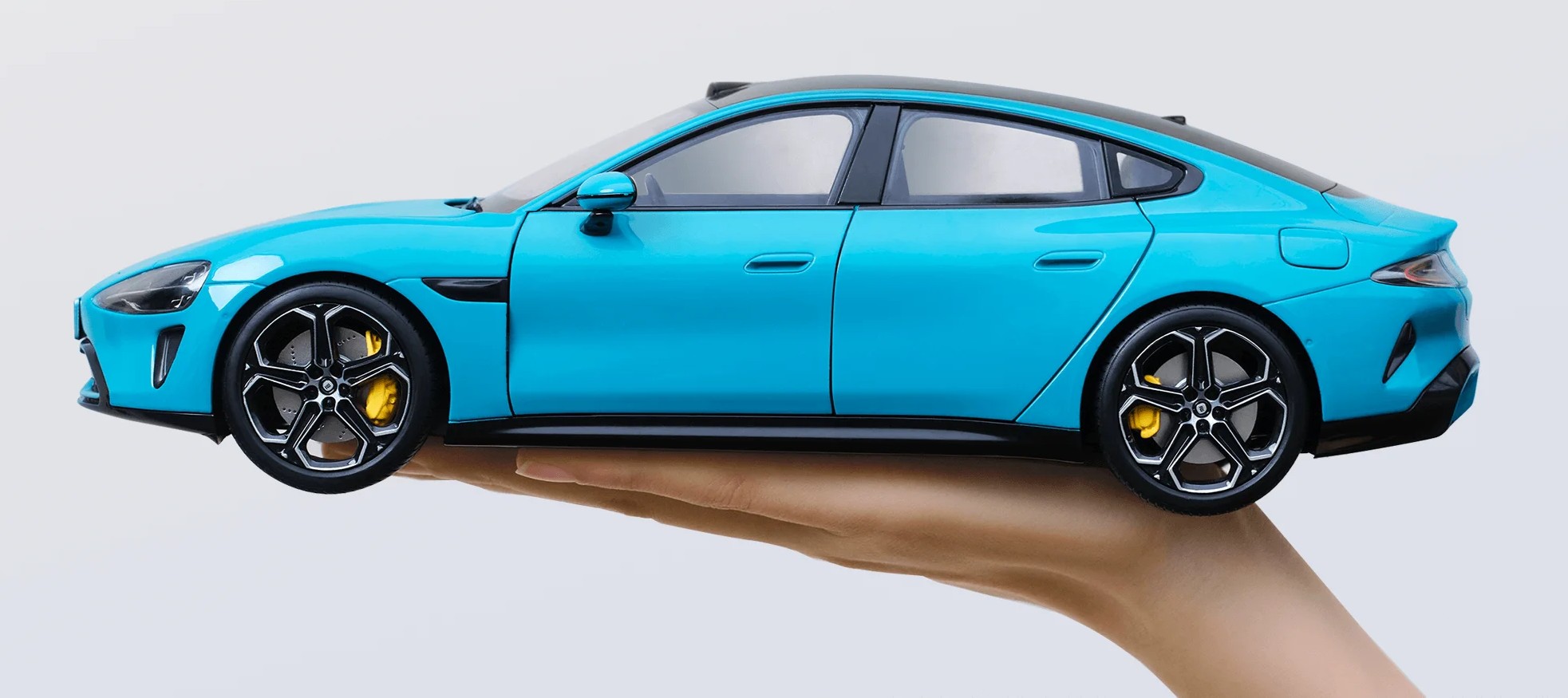 Уменьшенная модель Xiaomi SU7 Die-cast Model Car выполнена в масштабе 1:18 и точно повторяет пропорции оригинального автомобиля. Корпус изготовлен из цинкового сплава с элементами из пластика и полиуретана, благодаря чему модель выглядит детализированной и ощущается увесистой. Доступны два варианта расцветки — синий и оранжевый.