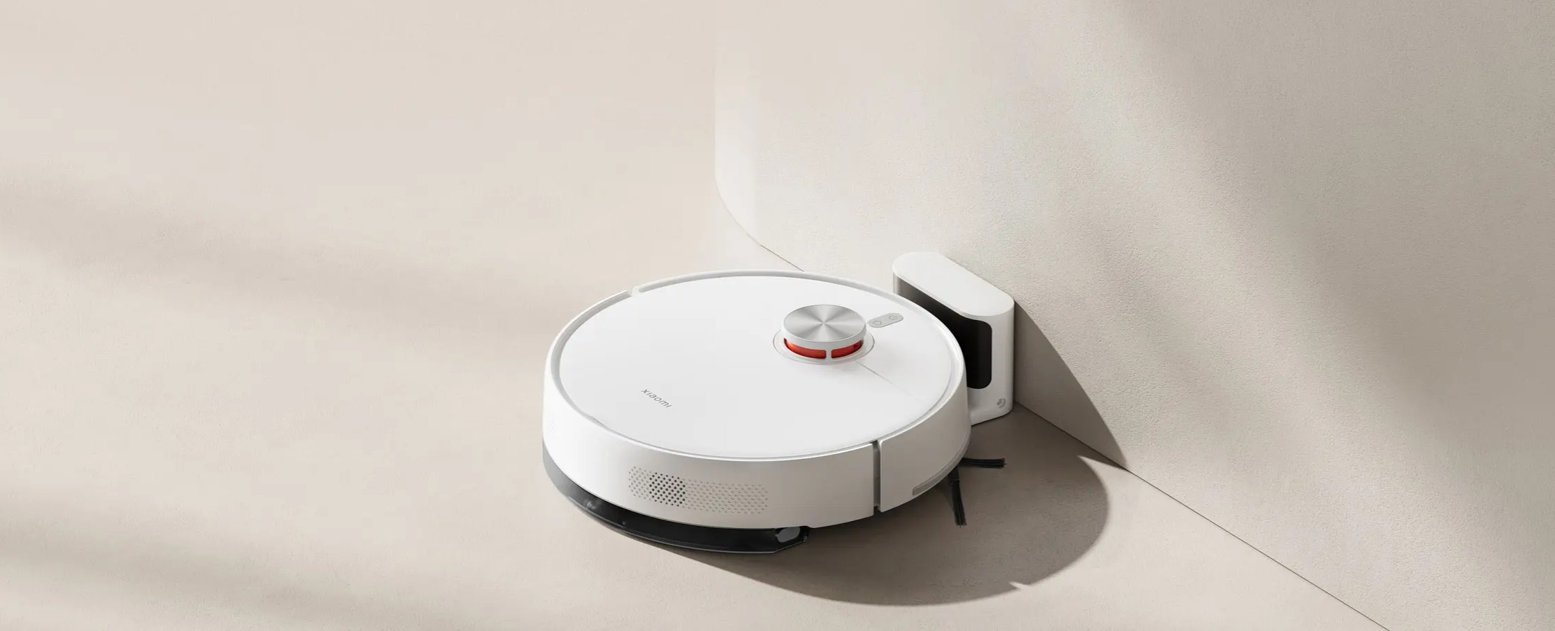 Xiaomi Robot Vacuum S40 выполнен в белом цвете с оранжевыми акцентами, выглядит стильно и современно. Высота корпуса всего 9,8 см позволяет устройству легко заезжать под мебель, а вес в 4,12 кг делает его достаточно лёгким для переноски.