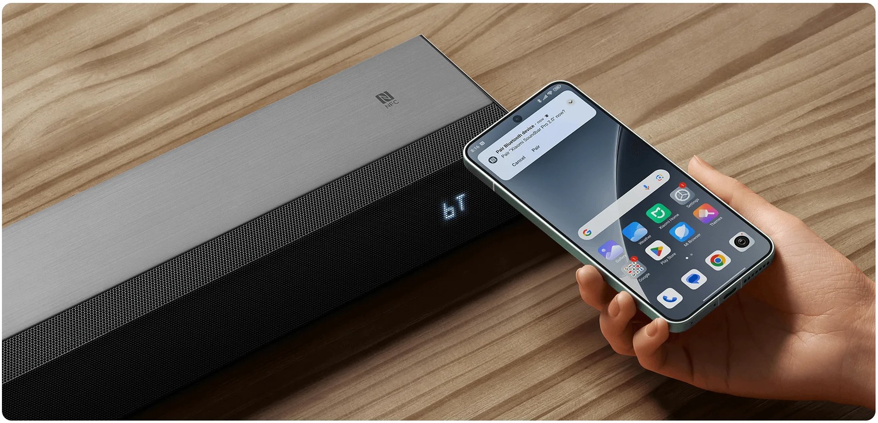Soundbar Pro 2.0 прост в повседневной эксплуатации и не требует сложной настройки. Все основные действия выполняются через комплектный пульт: изменение громкости, выбор режима, переключение источников. Благодаря NFC подключить смартфон к саундбару можно мгновенно — достаточно прикоснуться, чтобы передавать музыку. Модель работает стабильно и не усложняет сценарии использования, делая звук телевизора заметно выразительнее.