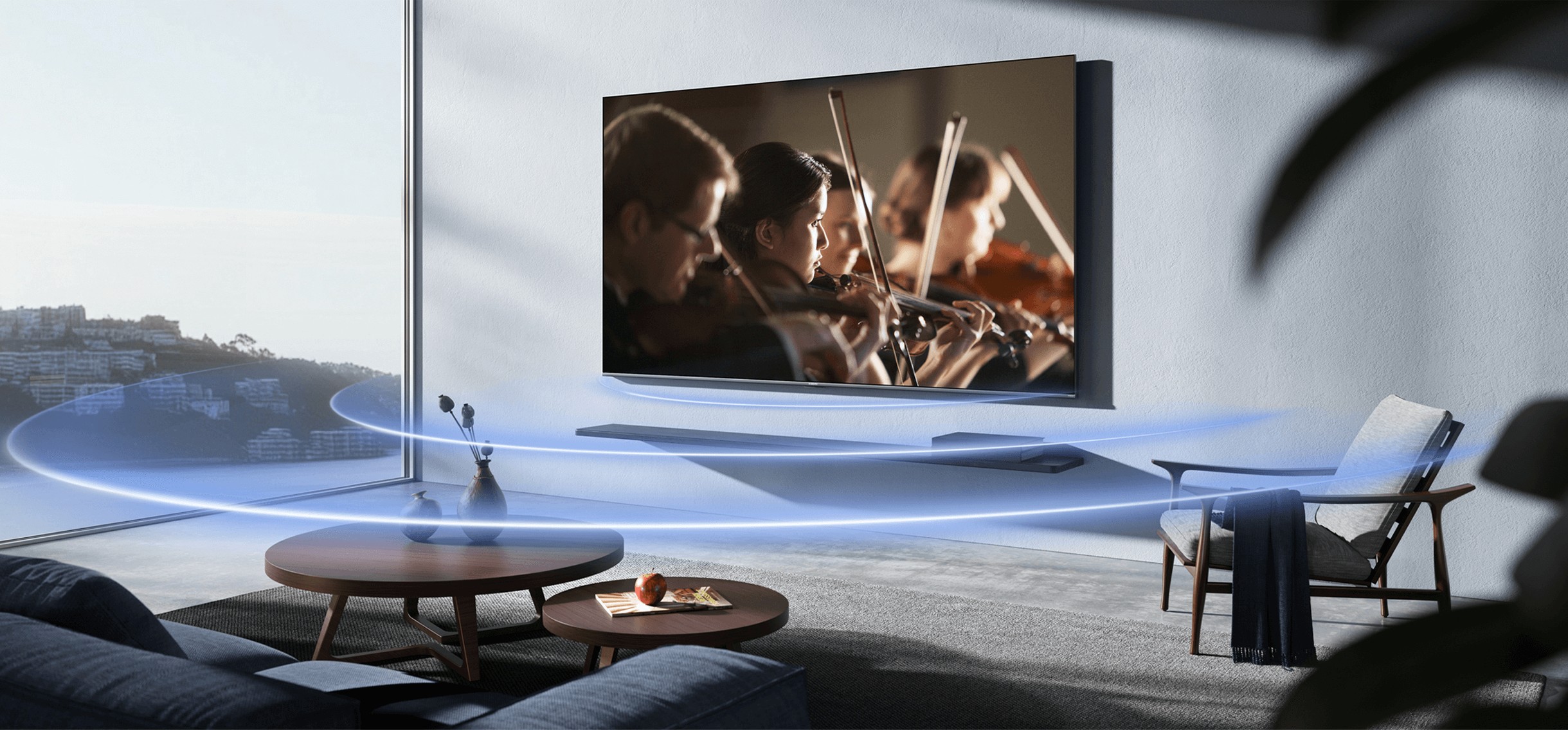 За звук отвечает система мощностью 30 Вт с поддержкой Dolby Atmos и Harman AudioEFX. Динамики выдают чистое и насыщенное звучание, а технология Xiaomi Sound делает аудиовосприятие ещё глубже. Поддерживаются все основные аудио- и видеоформаты, включая MPEG, H.265, FLAC и DTS. Телевизор легко воспроизводит файлы с USB-носителей.