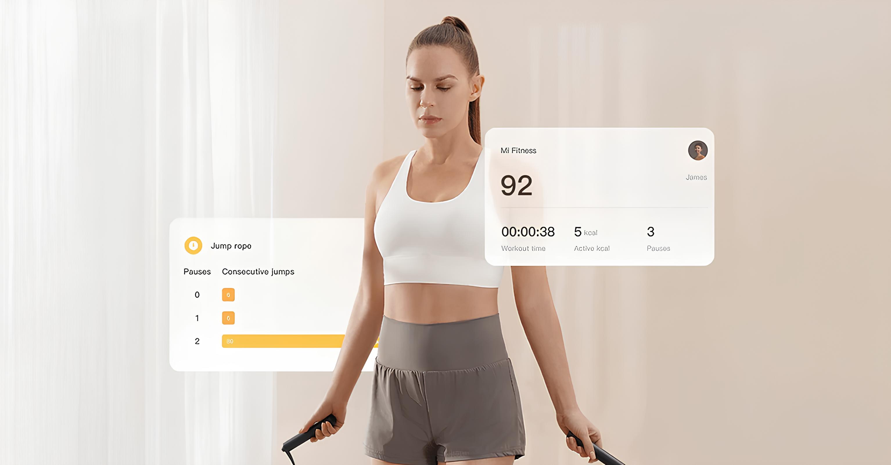 Мобильное приложение, синхронизированное с скалкой Xiaomi Smart Jump Rope, позволяет отслеживать ваши данные о тренировках, как например количество прыжков, сделанных вами, скорость, длительность тренировки и многое другое. Кроме того, оно предоставляет подробную статистику о ваших результатов, показывая, как вы продвигаетесь к своей цели.